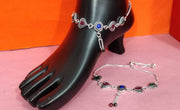 Heart Design Silver-Plated Payal with Multi-Color Stones – Trendy Oxidised Anklet for Women