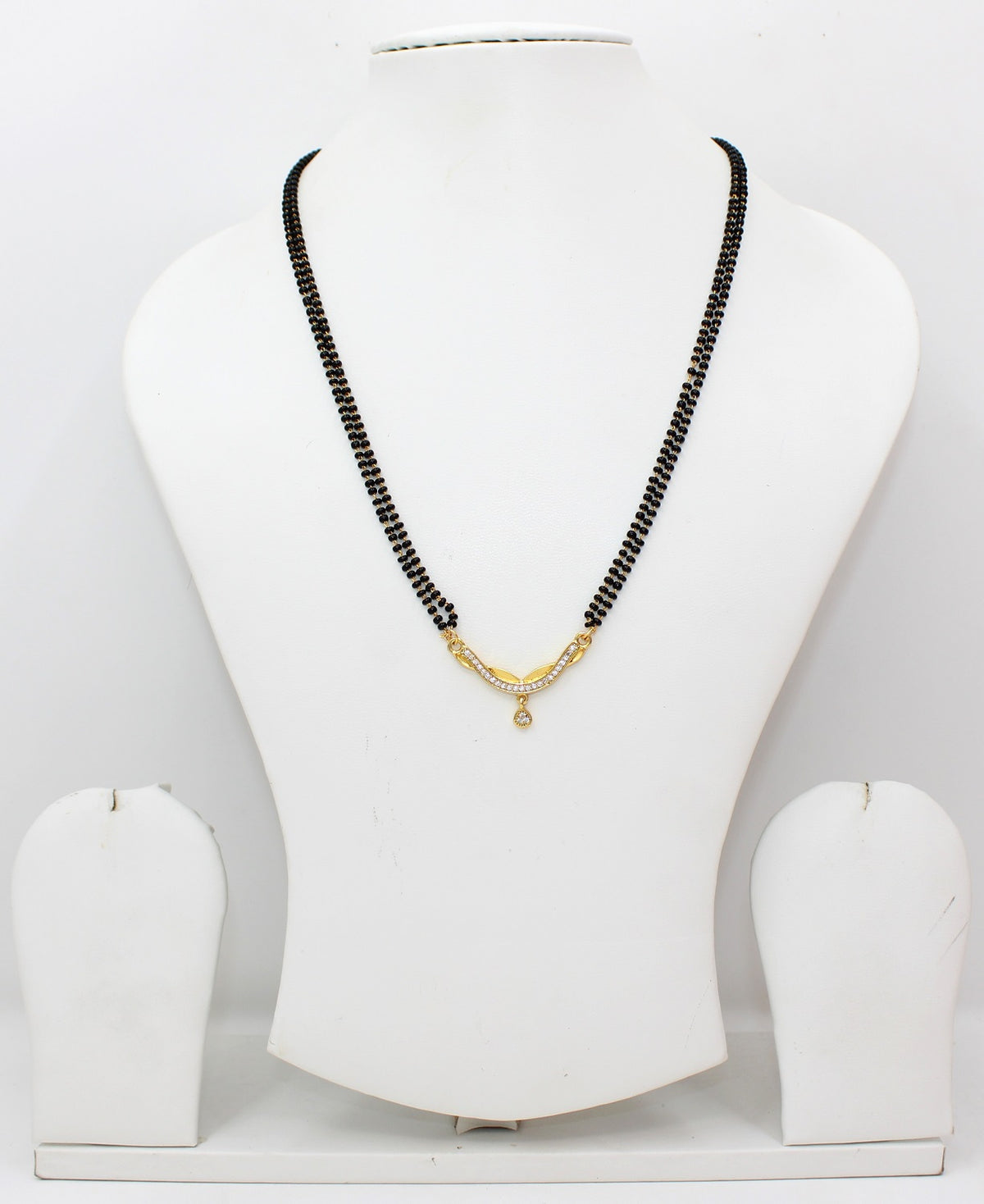 Double-Chain Black Bead Mangalsutra with Elegant CZ Stone Pendant – Traditional & Stylish