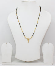 Celebrate your bond with elegance! This designer gold-plated mangalsutra features a classic combination of black beads and golden accents, symbolizing tradition and love. The centerpiece boasts a charming CZ-studded swirl pendant with a dangling drop charm, adding sparkle and sophistication to your everyday look.
