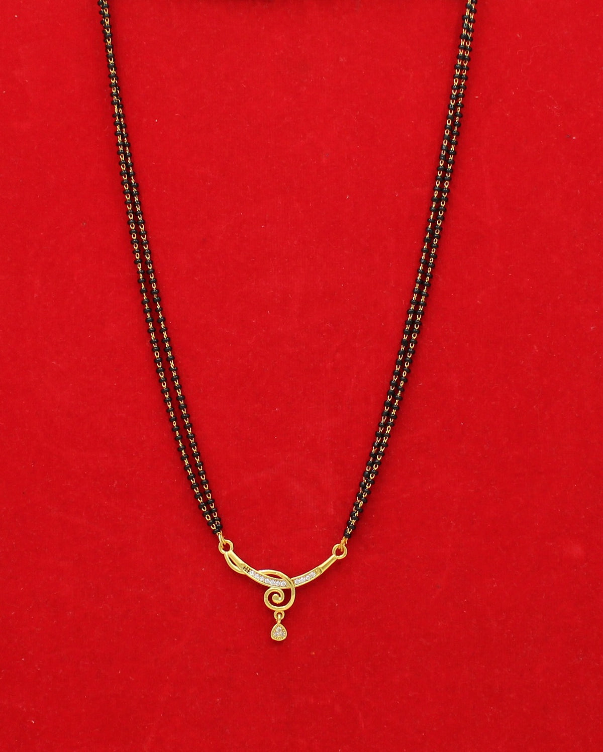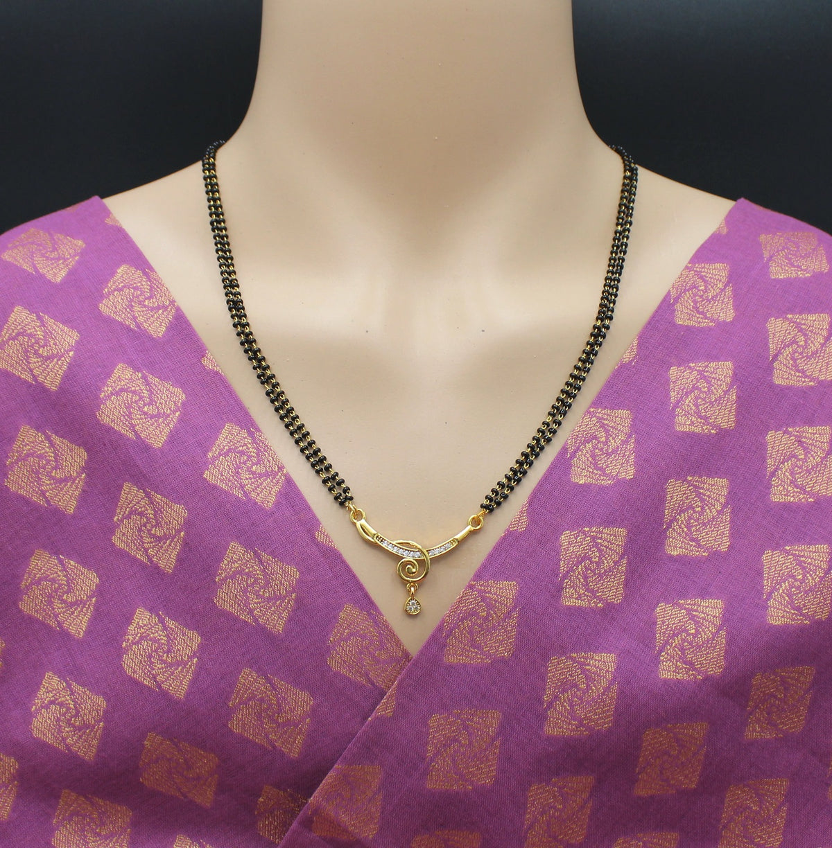 Elegant Double-Line Black Bead Mangalsutra with Golden Spiral Pendant