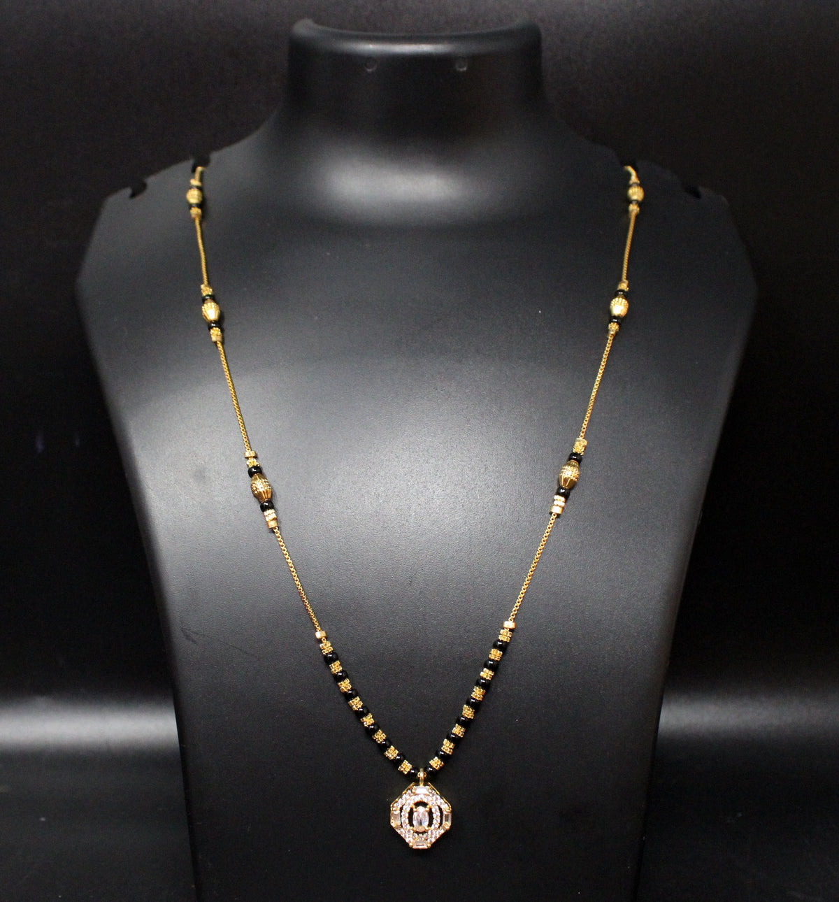 Gold-Plated Mangalsutra with Black Beads & Hexagon Stone Pendant – Stylish Daily & Festive Wear