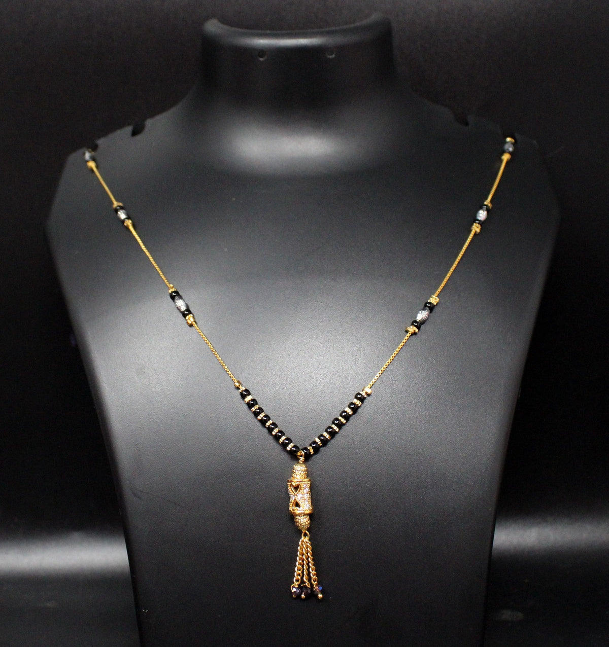 Gold-Plated Designer Mangalsutra with Black Beads & Long Pendant – Traditional Daily & Festive Wear
