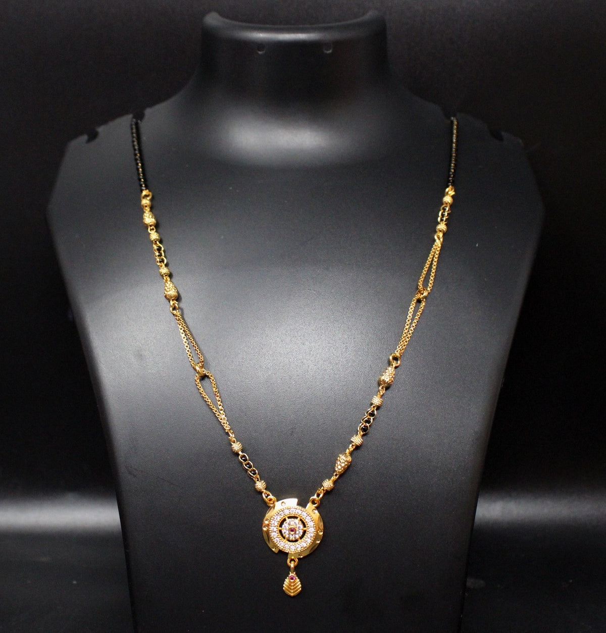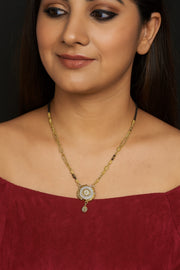 Designer Gold-Plated Mangalsutra with Circular Pendant & Black Beads – Elegant Daily & Festive Wear