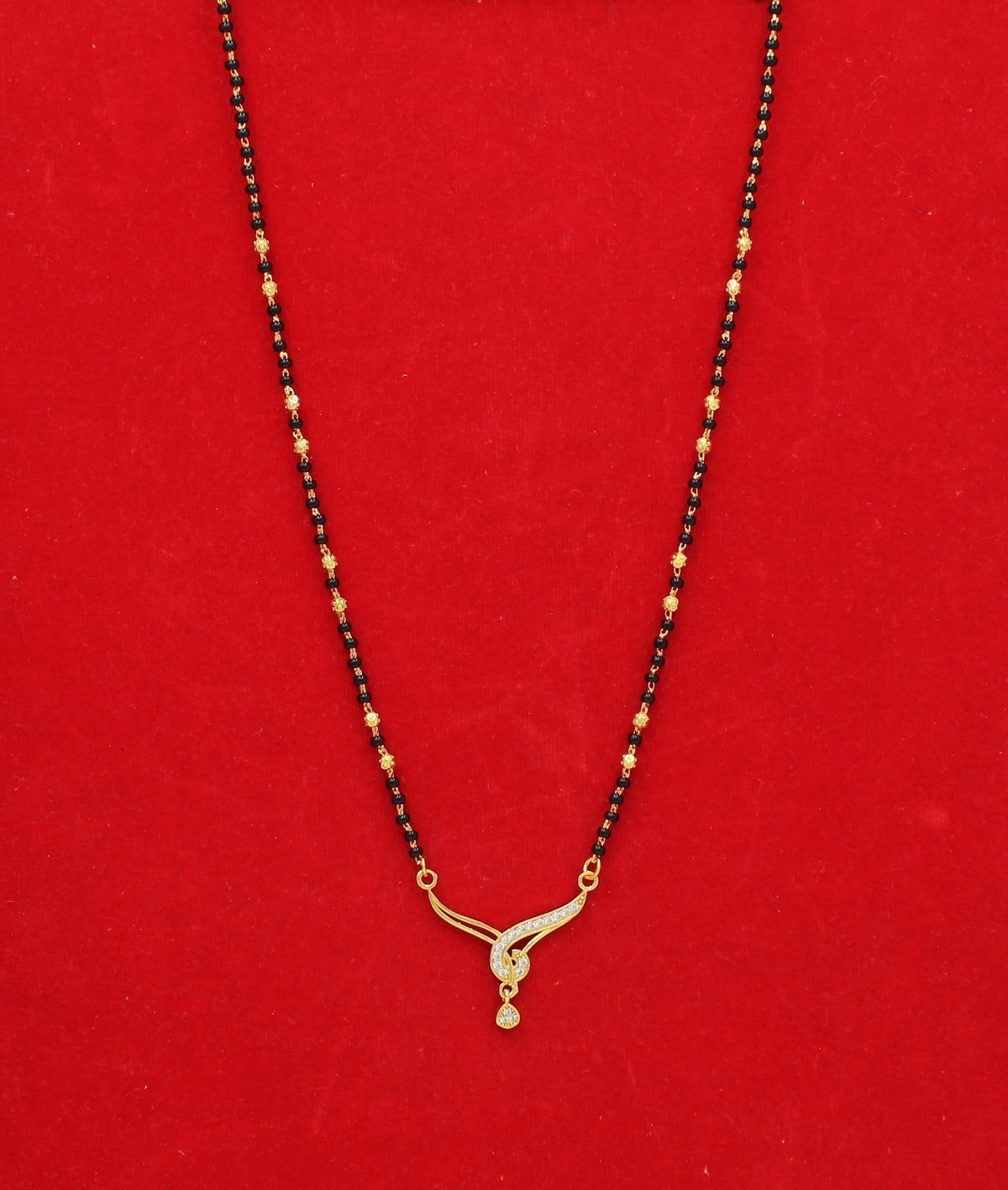 Add a touch of elegance to your everyday style with this dual bead mangalsutra, crafted with alternating black and golden beads for a traditional yet modern appeal. The centerpiece features a stylish gold-plated pendant adorned with sparkling CZ stones and a delicate drop design, making it a perfect blend of grace, beauty, and symbolism. Lightweight and versatile, this mangalsutra is designed for women who love to carry tradition with a modern twist.