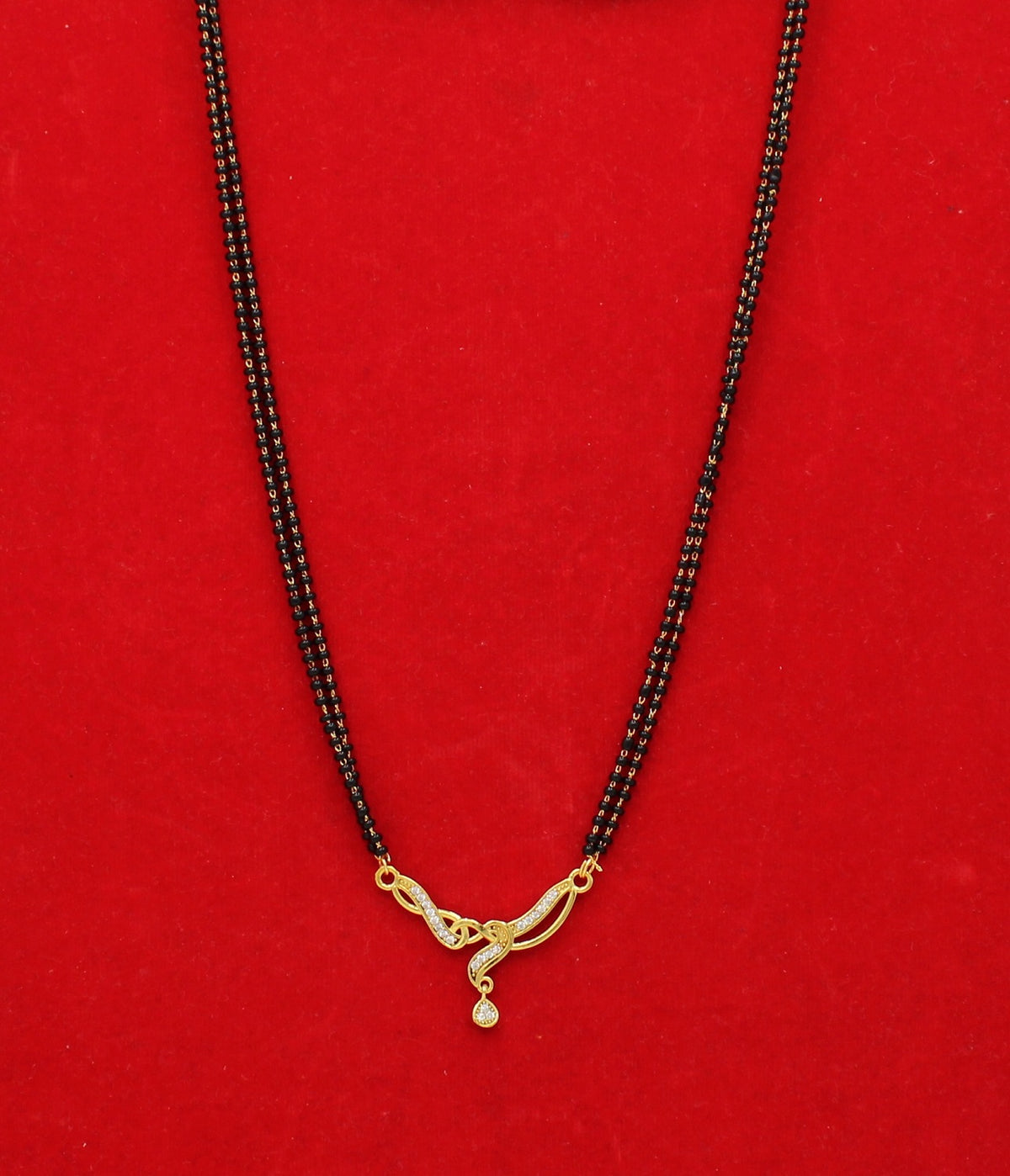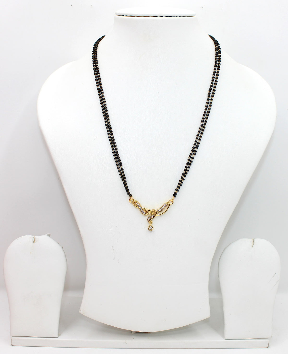 Gold-Plated Double Chain Mangalsutra with CZ Stone & Drop Pendant