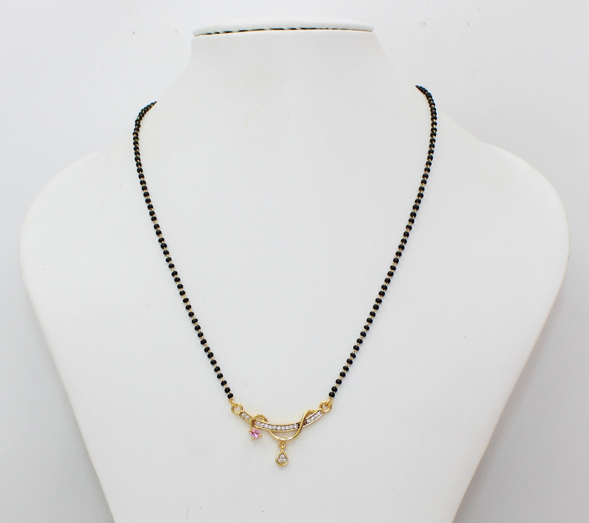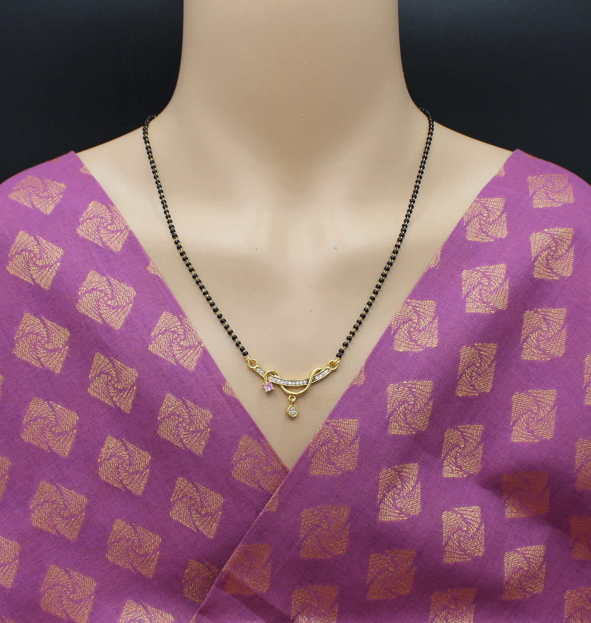 Stylish Gold-Plated Mangalsutra with Pink & White CZ Stones