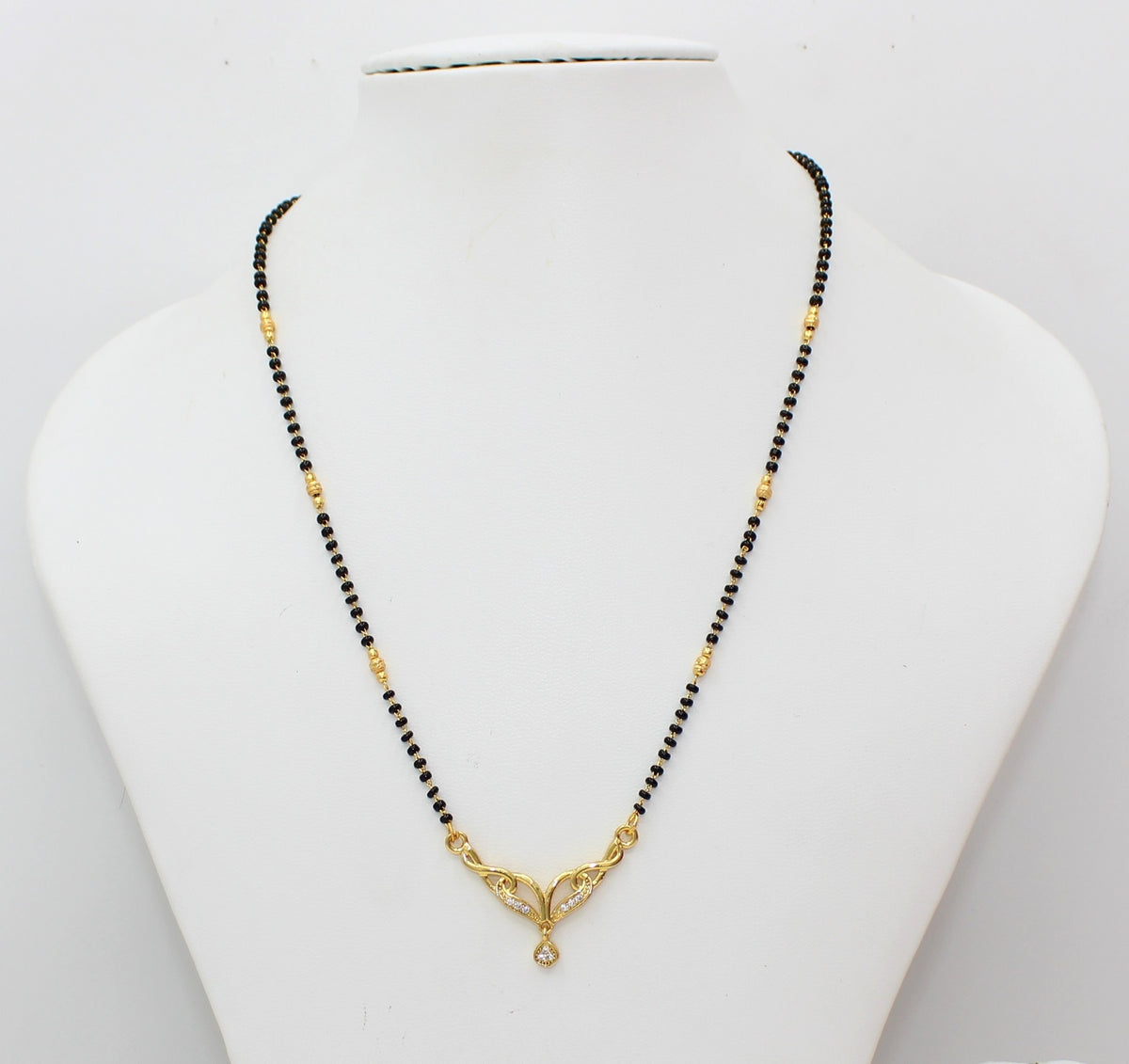 Elegant Gold-Plated Mangalsutra with CZ Pendant & Classic Black Beads