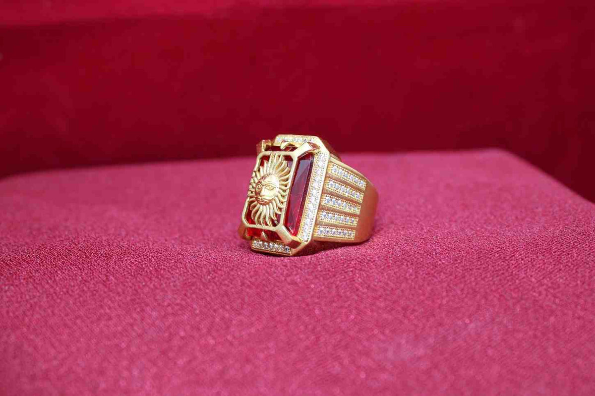 1 Gram Gold Plated Sun With Diamond Best Quality Ring For Men - Red / 20