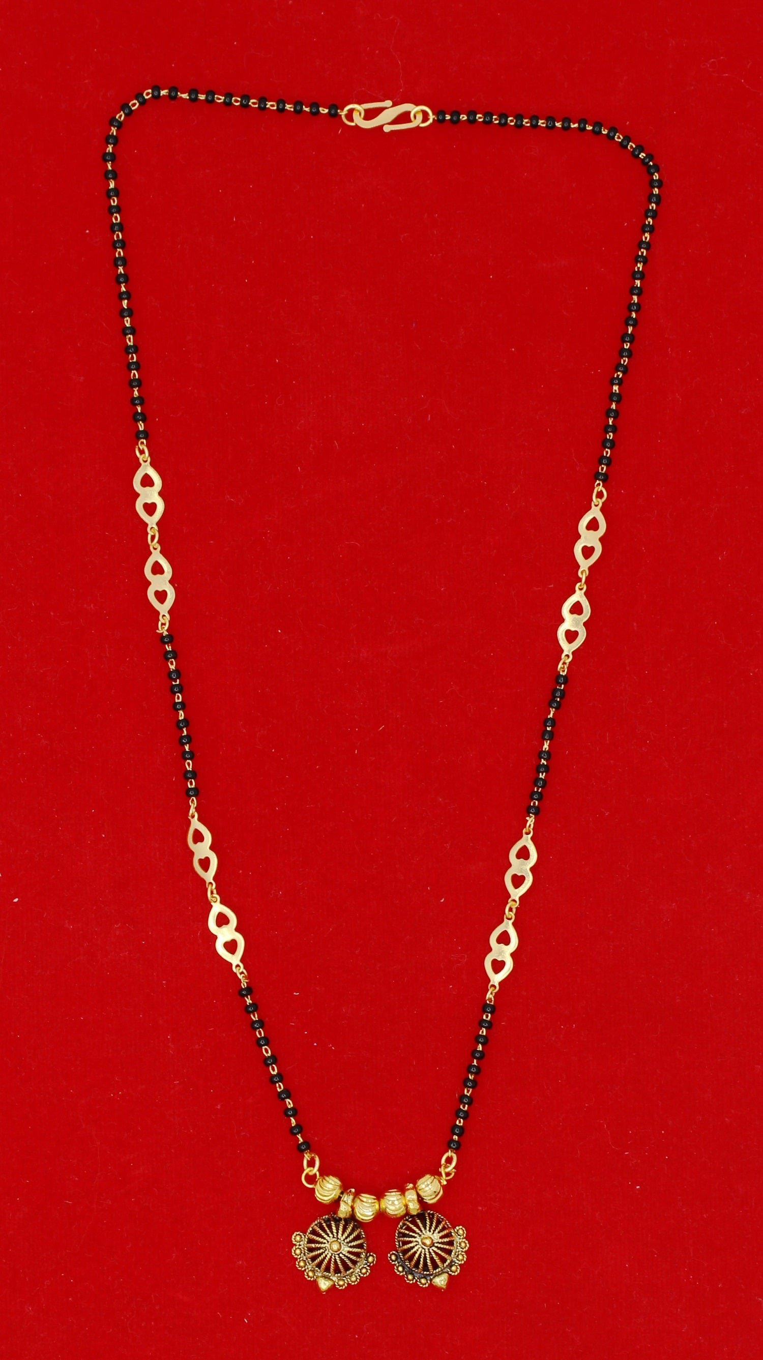 Featuring two beautifully detailed lotus-inspired pendants symbolizing purity and devotion, this mangalsutra blends the charm of tradition with a hint of contemporary sophistication. The premium black bead chain with golden motifs adds radiance to any outfit, making it perfect for daily wear or festive occasions.