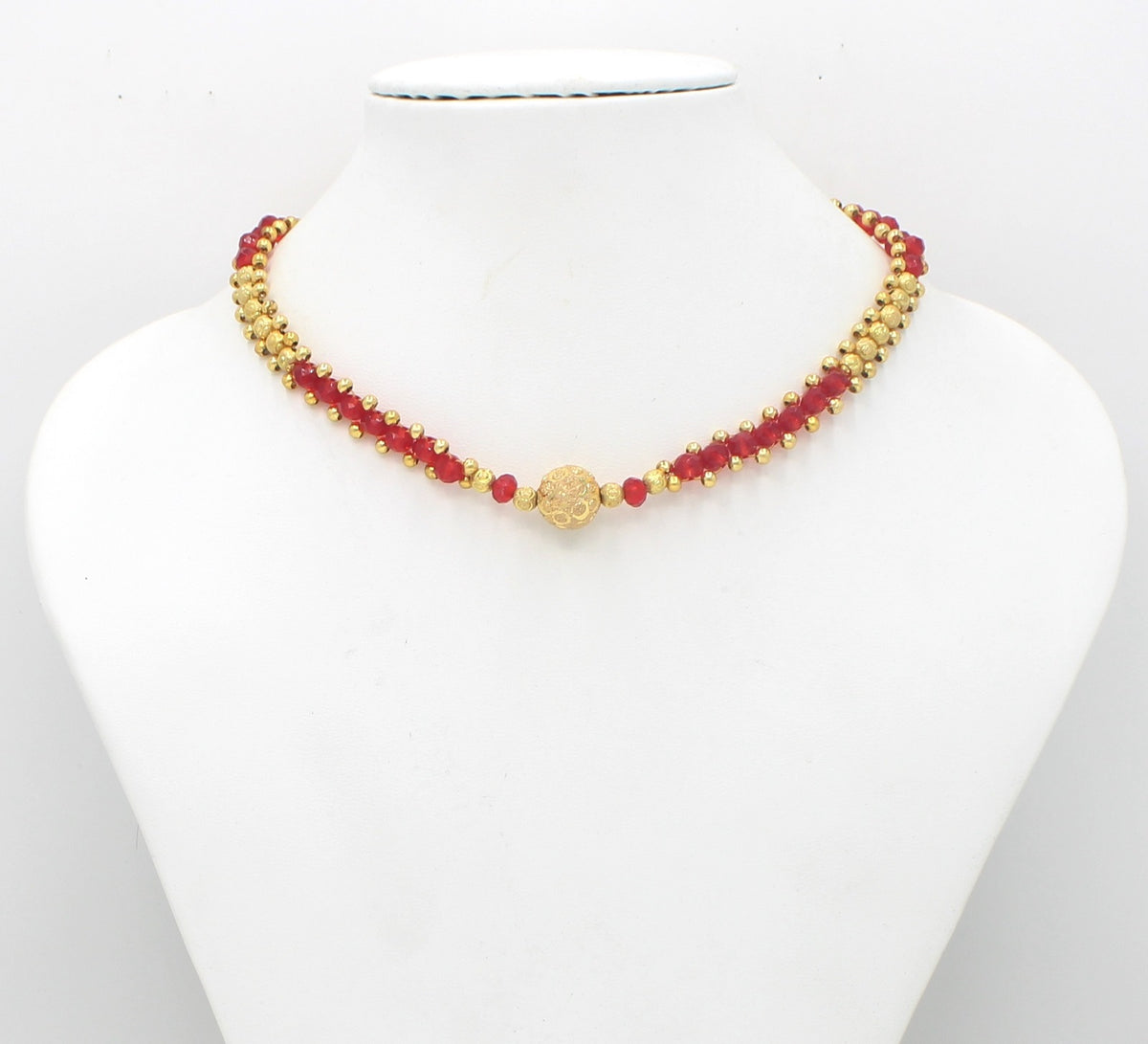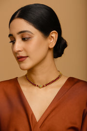 Classic Ruby Red and Gold Beaded Choker Necklace – Elegant Festive & Wedding Jewellery for Women