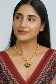 Traditional Gold-Plated Beaded Mangalsutra Necklace with Red Stone Pendant – Elegant Bridal & Festive Jewellery