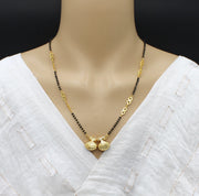 The shell-shaped dual pendants, plated in rich gold tones, symbolize prosperity and feminine strength. Strung on a classic black bead chain with gold infinity links, this mangalsutra adds an artistic touch to your daily or festive ensemble. Lightweight yet luxurious, it’s designed to shine with every outfit — saree, kurti, or modern wear alike.