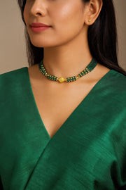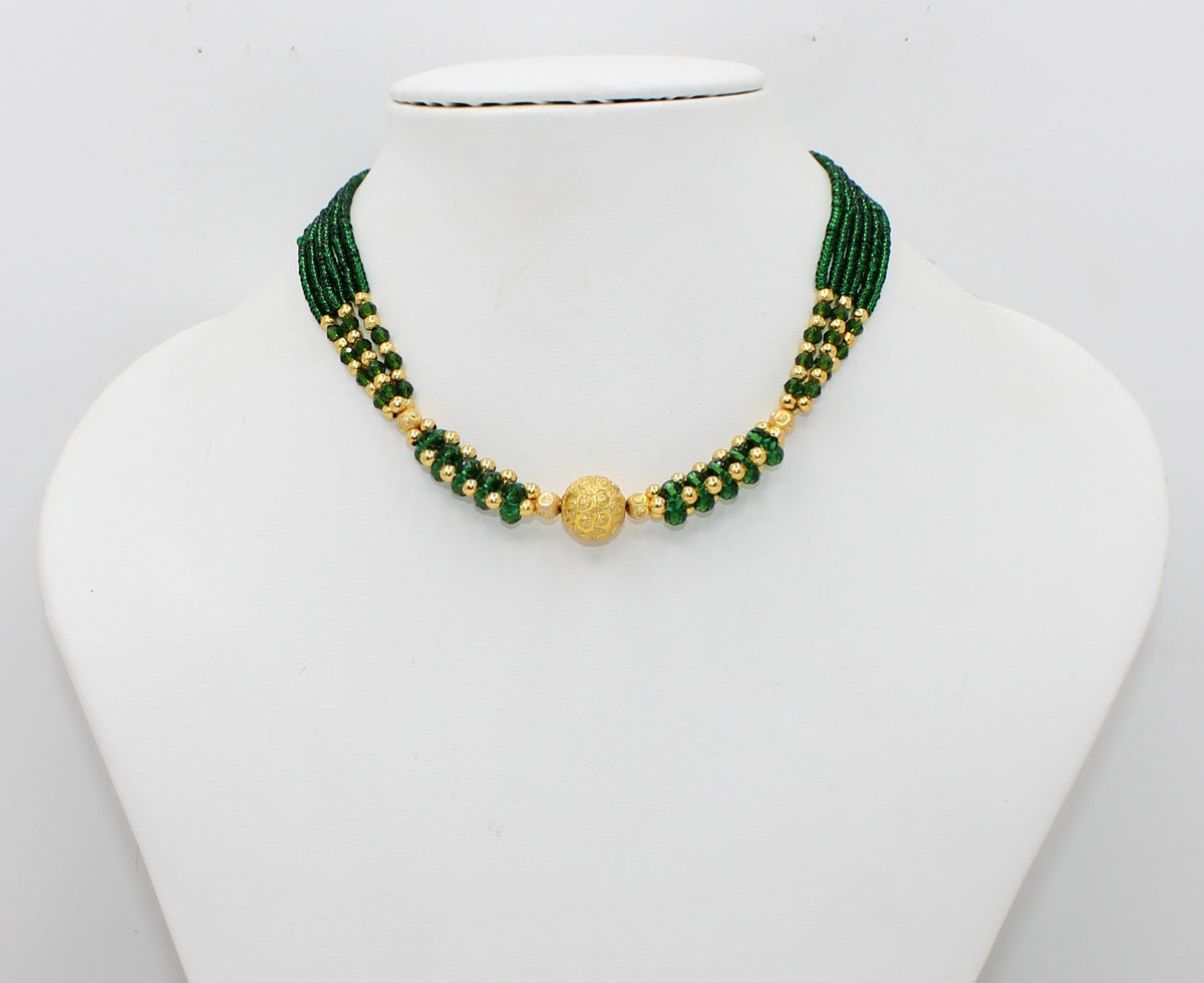Emerald Green Beaded Choker Necklace with Gold-Plated Center Bead – Elegant Festive & Wedding Jewellery