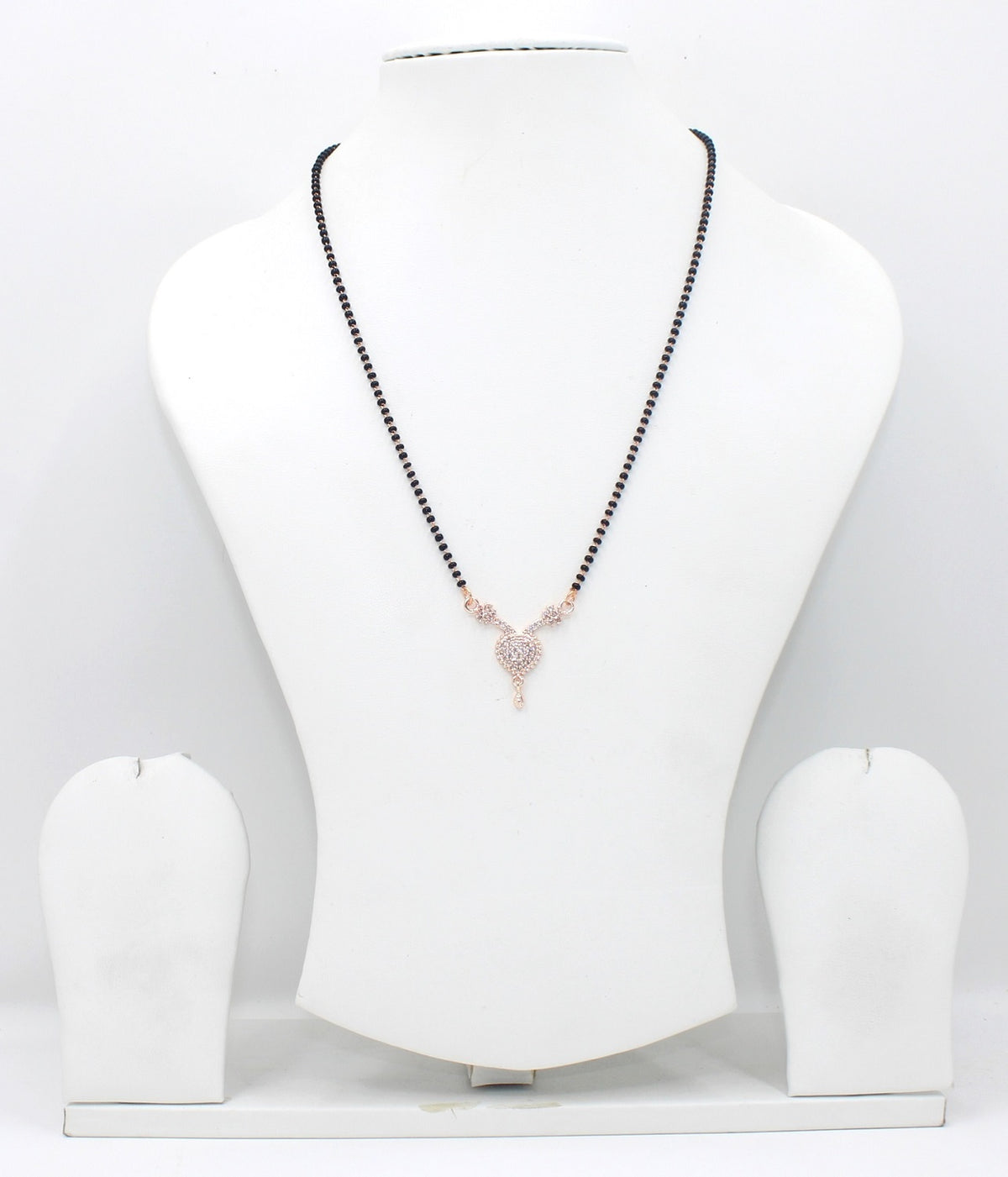 Heart Drop Diamond Mangalsutra – Rose Gold Plated Black Bead Chain for Daily Elegance 💖