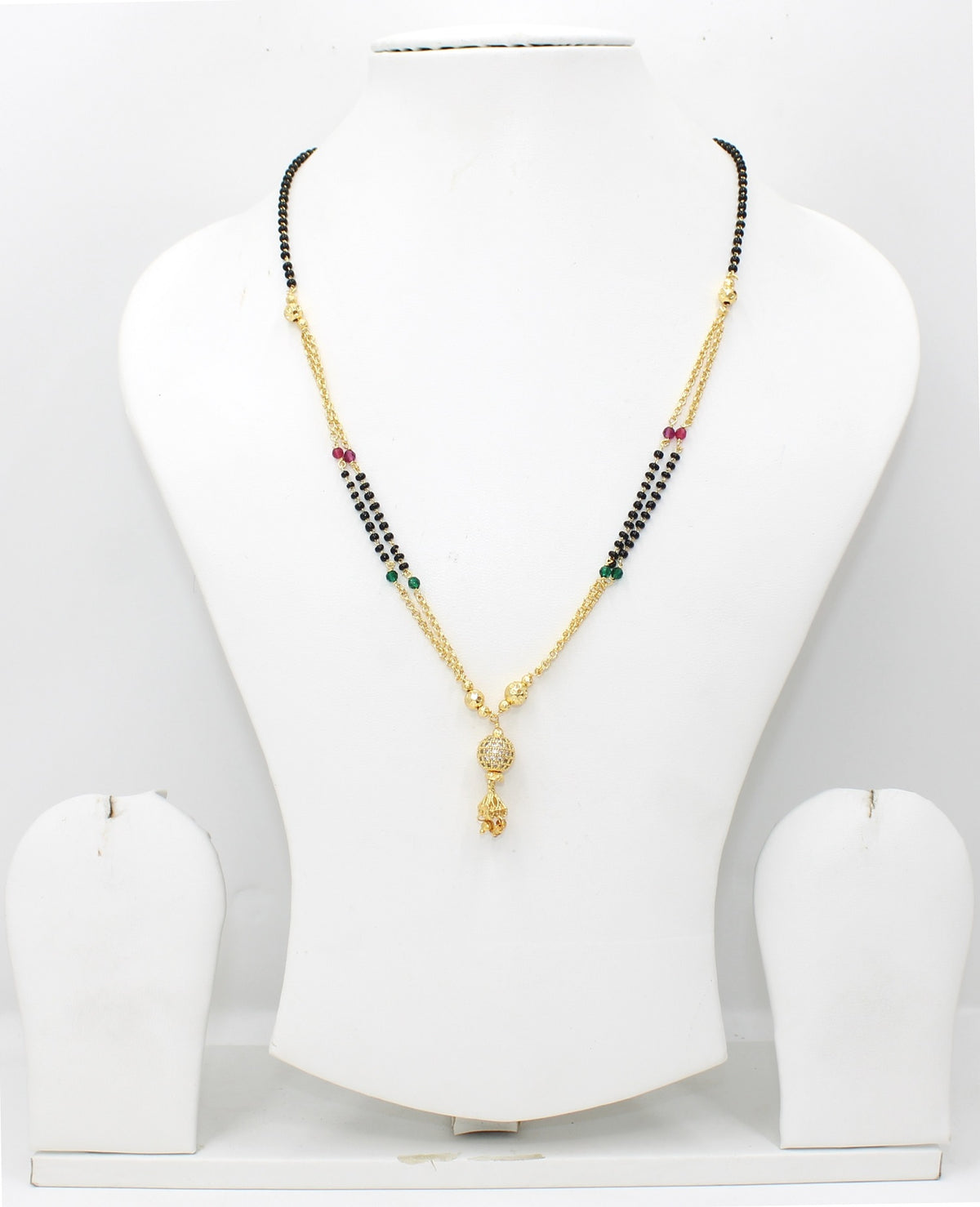 Premium Double Chain CZ Pendant Mangalsutra 💫 | Gold Plated Daily Wear Design with Color Beads